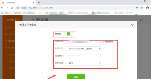 5)192.168.49.1路由器设置双频WIFI,选择左侧无线设置,点击“无线名称与密码”。